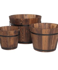 Ktaxon Wooden Bucket Barrel Planters Flower Pots for Plants Garden Outdoor Indoor Decor, Set of 3