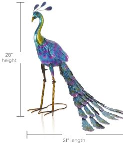 Nisorpa 28 Inch Metal Peacock Decor Garden Statues and Sculptures Standing Indoor Outdoor Backyard Porch Patio Lawn Art Decorations
