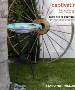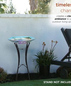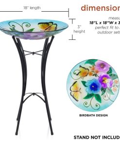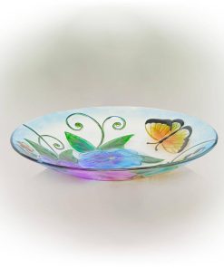 Beautiful artful glass birdbath bowl: watch all birds splash over the hand-painted look of flowers and butterflies. The colorful and vibrant style will add a gorgeous touch your garden or any outdoor living space.