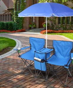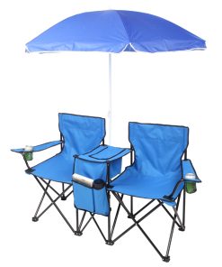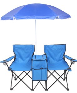 Arttoreal Double Beach Chair with Removable Umbrella Canopy,Portable Folding Beach Chair for Oudoor,Camping and Picnic,Blue