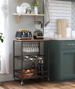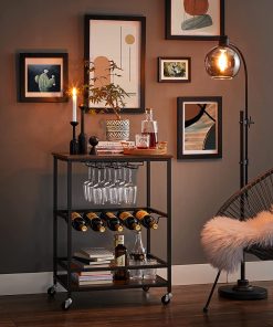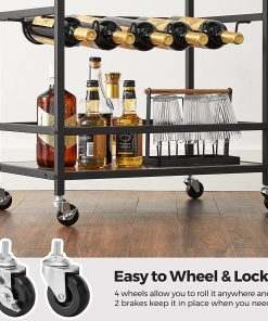 - It Has the Magic Touch: The 4 swivel wheels are what makes it stand out; roll this bar cart smoothly from the kitchen to the living room and beyond, while 4 stretcher bars near the bottom keep bottles safely in place