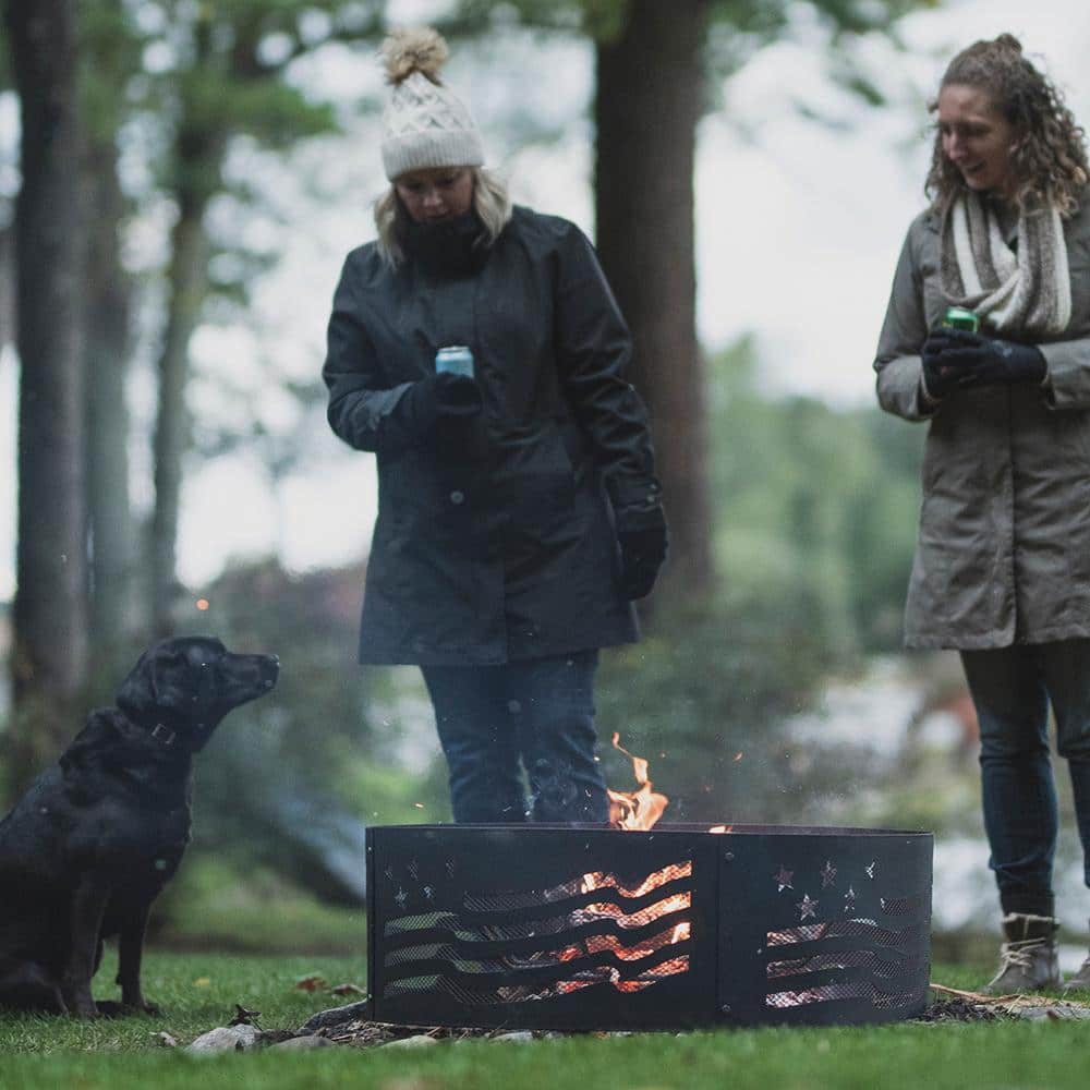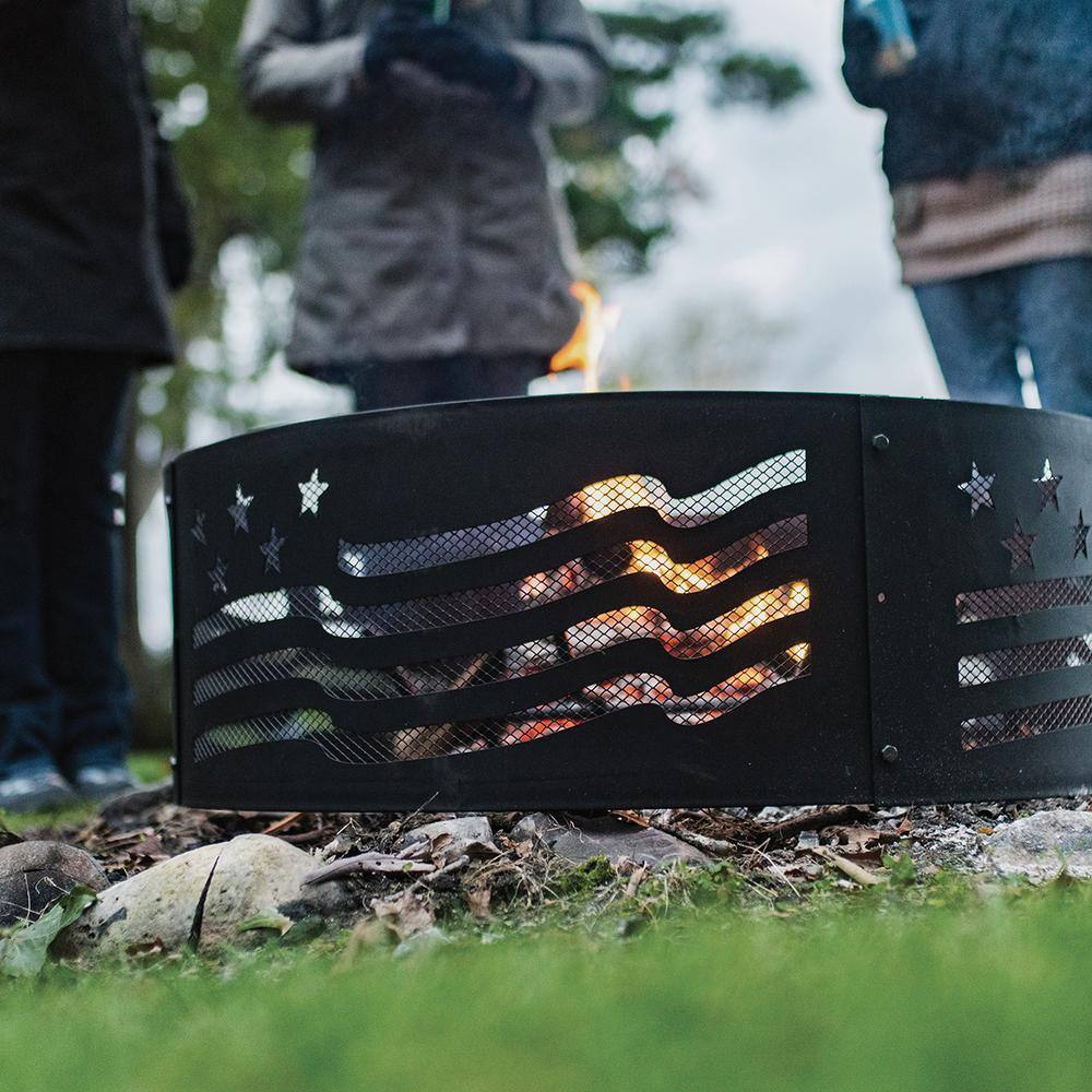 BLUE SKY OUTDOOR LIVING Decorative 36 in. x 12 in. Round Steel Wood Fire Pit Ring – Stars and Stripes FR361208SAB