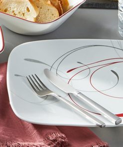 - SPLENDOR STYLE: This set comes with plumes of soft gray and rich red on a white background, bringing you and your loved ones together for an elegant culinary experience