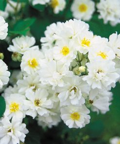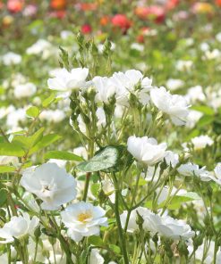 Heirloom Roses provides the highest quality rose bushes that are grown on their own roots, resulting in a live rose bush that is far superior to grafted roses. The benefits is a plant that will have more flowers and blooms, have increased hardiness to cold and sickness, and stay true to variety during its long life after being planted in your garden or pot. This rose is in memory of a young lady who stood up for her faith in God and lost her life at Columbine High. The rose covers itself with 1 1/2″ , semi-double blooms of purest white borne in large clusters with a mild honey perfume that can be enjoyed from spring until fall. ‘Cassie’ won the American Rose Society’s trial ground Silver Medal. This white rose bush has shiny medium green foliage providing the perfect backdrop for its continuous snowstorm of blooms.