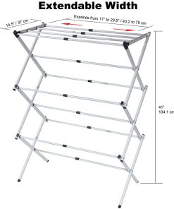 KEEP CLOTHES DRY THE NATURAL WAY: With a large drying surface, hang dry clothes over the horizontal spanning rods Perfect for the delicate garments that can’t be tossed in the dryer