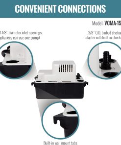 - AUTOMATIC HVAC PUMP: Ideal for collecting, detecting, and automatic removal of condensate from air conditioning equipment, dehumidifiers, high efficiency furnaces, condensing boilers, and other equipment where an automatic drain pump is required