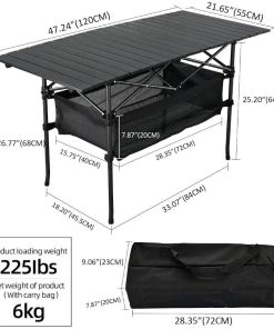 Multi-Function Folding Table For Daily Use: This portable folding table can be used as an outdoor dining table, BBQ Table laptop table, gaming table. Perfect for camping, beach, backyard, BBQ, party, patio, picnic. Portable and Easy to Carry With: Overall Dimensions: L 47in* W 21.65in * H 26.7in. Item Net Weight: 13.2lbs. Easy to be folded and set up, this table can be stored in a matched handbag.