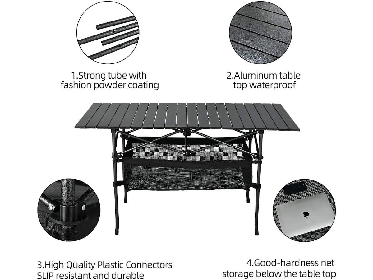 - Premium Durable High-Quality Material: This camping table is made of upgrade aluminum and the surface is waterproof, stain-resistant, lightweight, and the legs frame is made from strong steel, make it sturdy and durable.