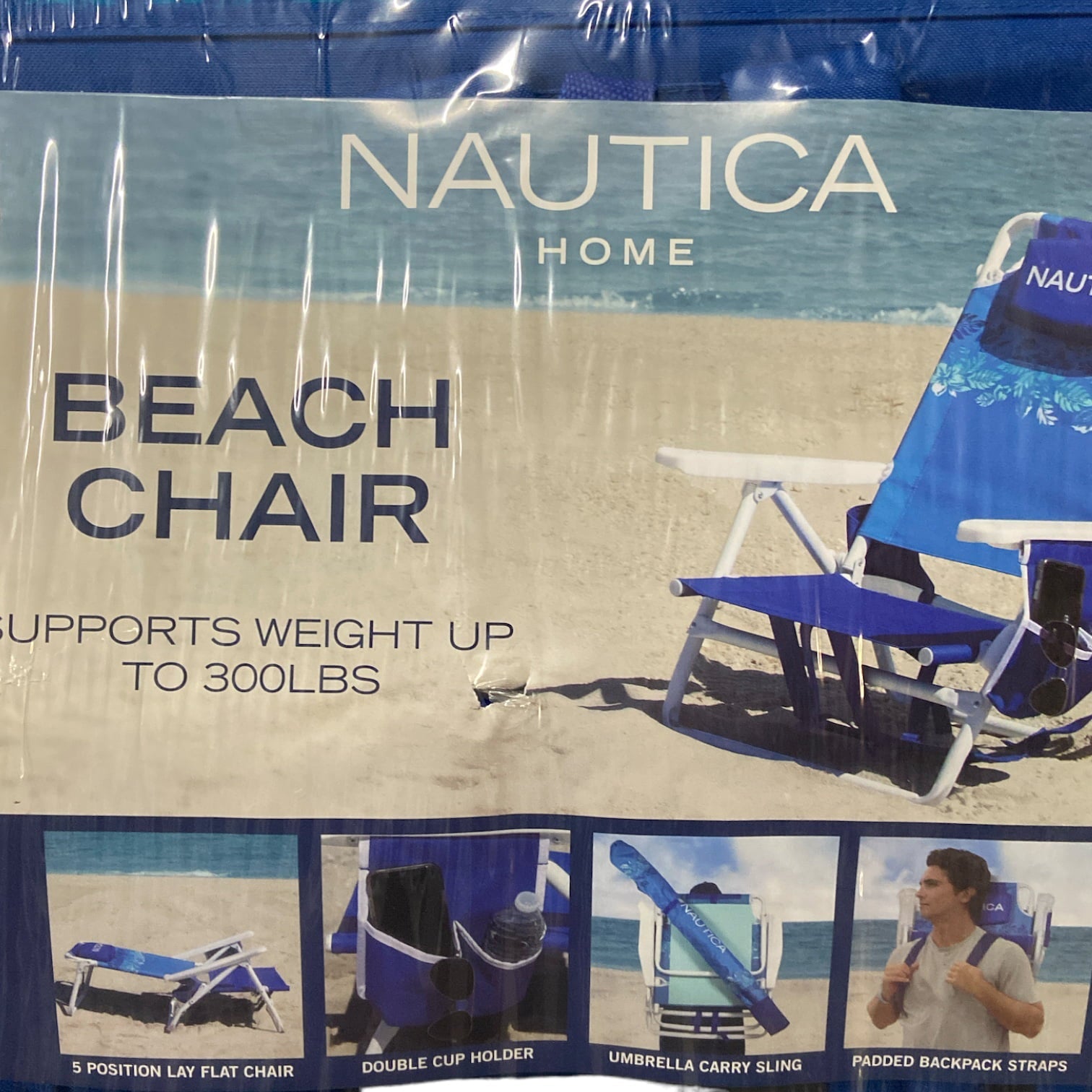 Nautica Portable Beach Chair, Double Cup Holder, Padded Straps ( Island Stripe)