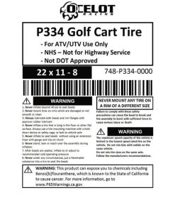 Ocelot Golf Cart All Trail 4-Ply UTV / ATV Sahara Type Turf Tire 22X11-8 P334