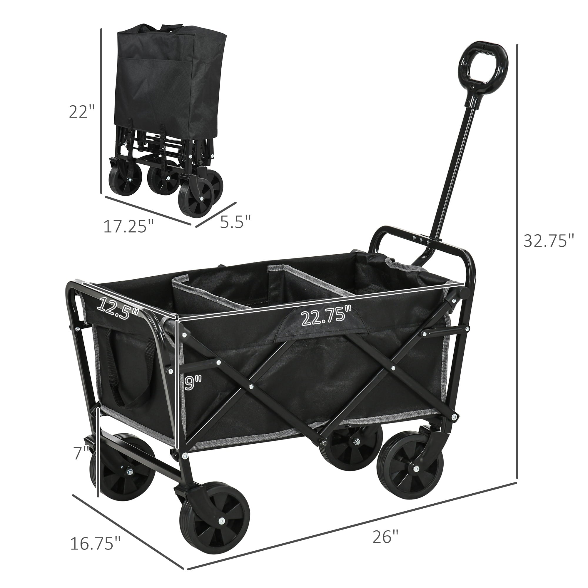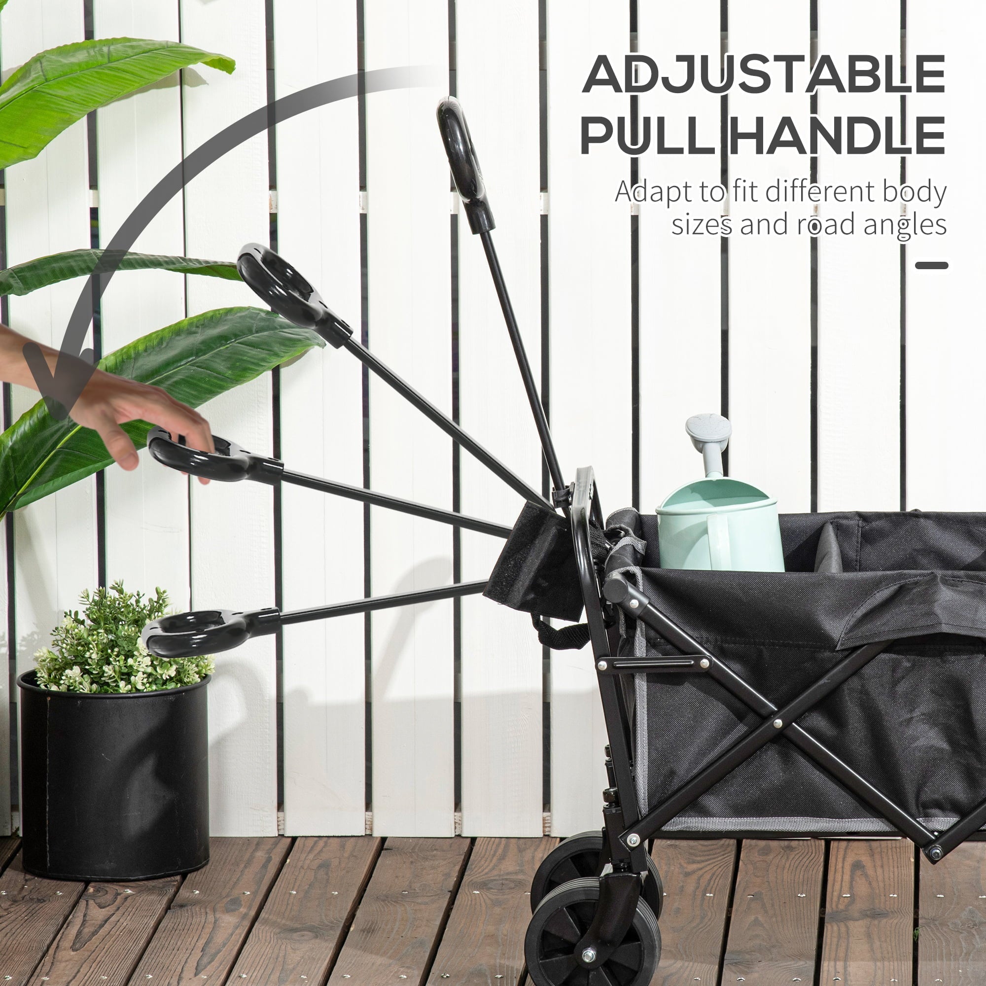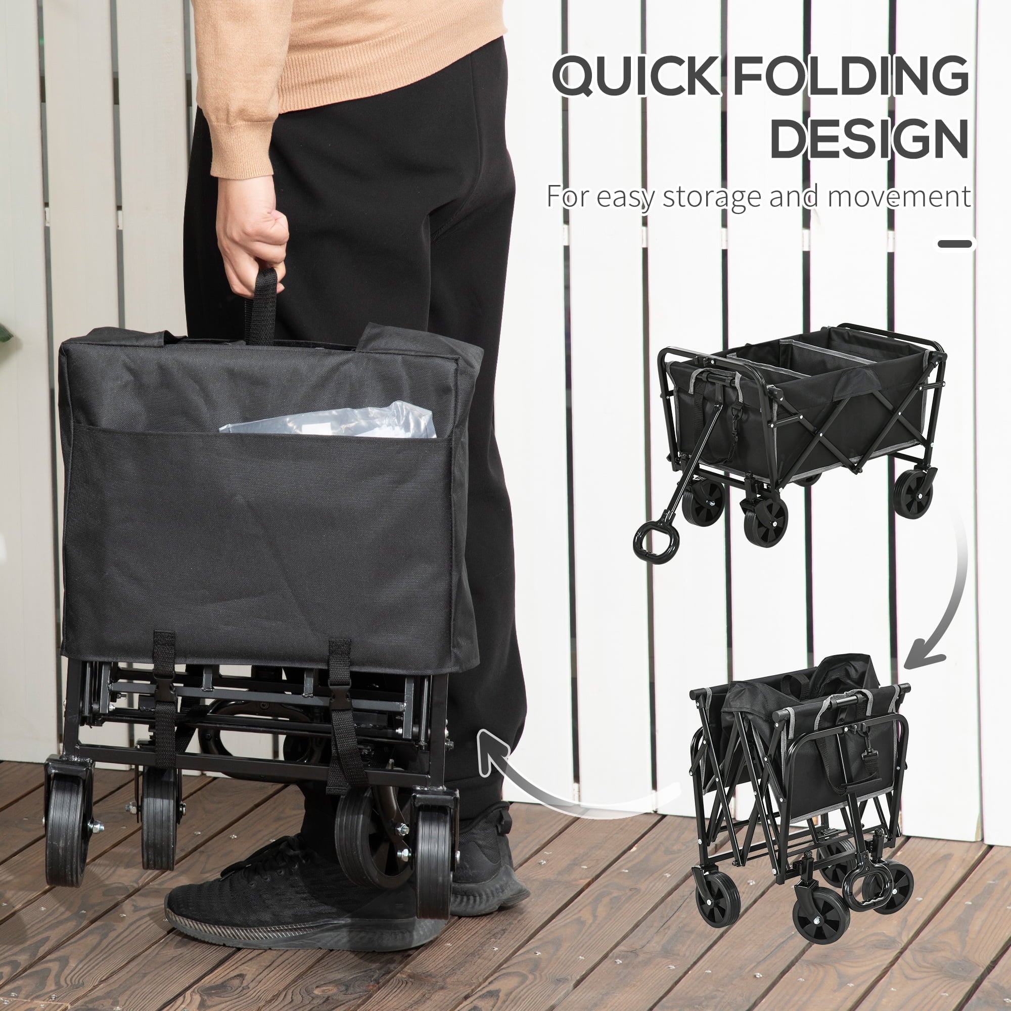 Outsunny Collapsible Folding Wagon Cart, Garden Wagon Portable Cart Black