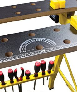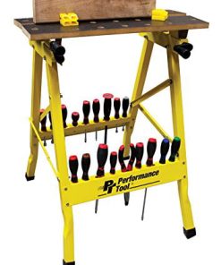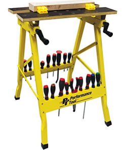 The Performance W54025 Multi-Purpose Workbench can be used to hold work pieces safely in place while working with them. The four bench dogs of the W54025 Workbench enable it to hold odd shaped workpieces in place without damaging their surfaces. The W54025 Workbench can also allow for cuts or holes to be made in workpieces with an open space under it, eliminating the worry of damaging surfaces underneath. Features: Folding design allows for easy storage without taking up much space Includes 4 bench dogs for holding odd shaped pieces Tabletop printed with grid, ruler and protractor for added convenience Includes tool storage rail to keep tools withing easy reach but out of the way 200-Pounds safe working load capacity Overall size: 23-7/8 x 25 x 31 in.