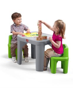 Step2 Mighty My Size Kids Plastic Table and Chairs Set, Gray