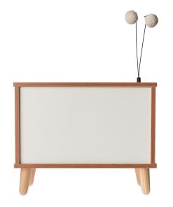 - Fun retro TV design with white, black, and natural wood colors is easy to coordinate with your home’s existing decor