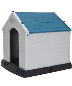 ZENY Plastic Indoor Outdoor Dog House Medium Pet Doghouse White, Blue Roof