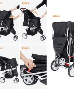 This pet stroller has a large space for your lovely small-breed pets. There is a soft cushion pad that allows your pet can sit or sleep on it. Its rolling design is suitable for an outing. 360 front wheel offers you flexible control. You can easily take your pet to any place you want. This folding pet stroller could save more space when you want to store or transmit it. You can keep it in your garage or closet until you need to use it. the top convertible design will give your pet shade when under the hot sun. If it’s going to rain, the convertible can also protect your pet from dampness. Item comes with all accessories and manual, which you can easily install in a short time.